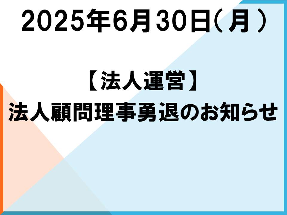 - 【法人運営】法人顧問理事勇退のお知らせ