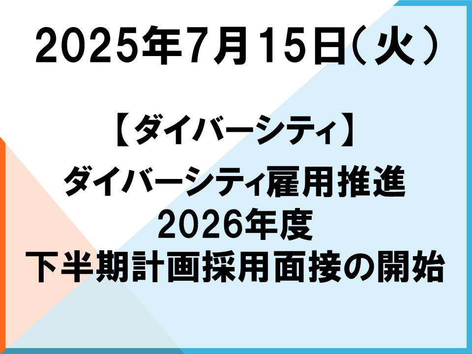 - 【ダイバーシティ】ダイバーシティ雇用推進2026年度下半期計画採用面接の開始