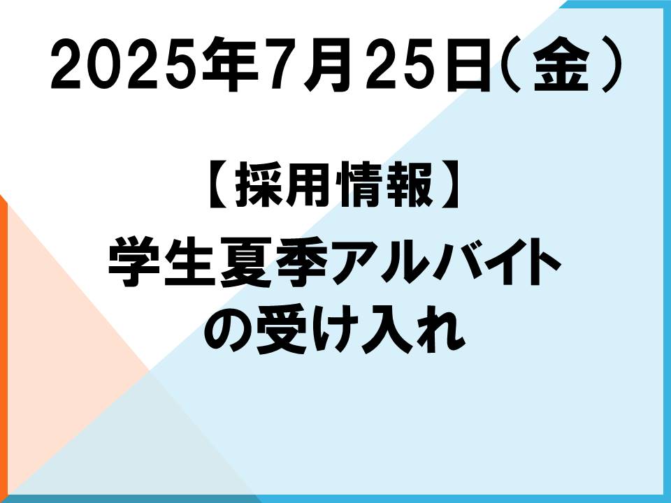 - 【採用情報】学生夏季アルバイトの受け入れ
