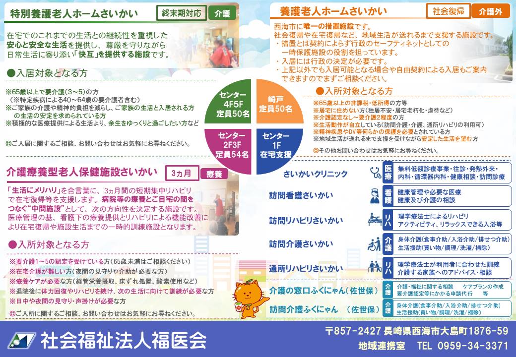 福医会では、地域の持続可能な未来のために、社会福祉として地域医療の提供と、地域福祉の安定した継続を課題として、以下のサービスを通じて高齢者福祉の総合提供に努めています。最大の特色として、社会福祉として地域医療を提供し、