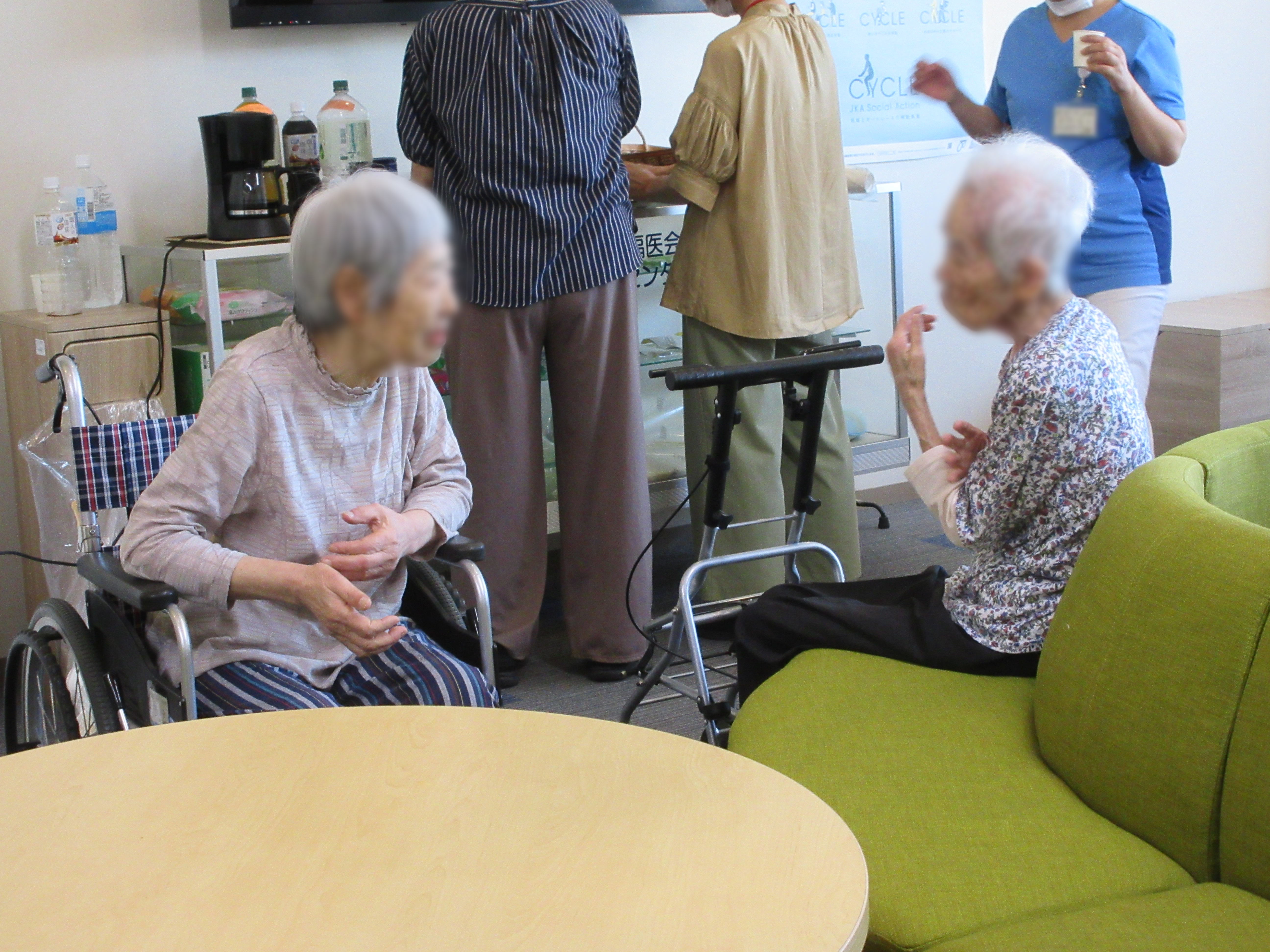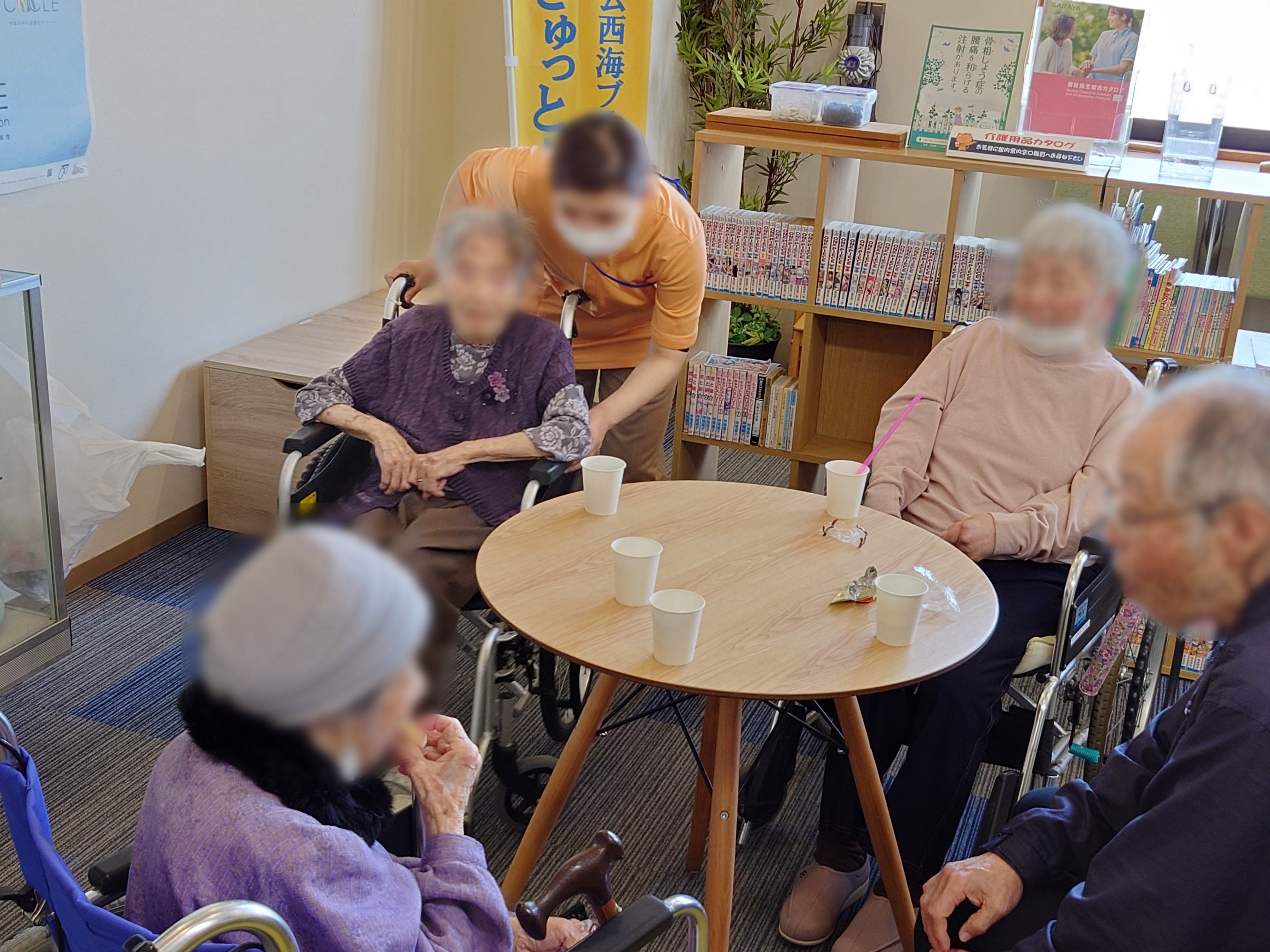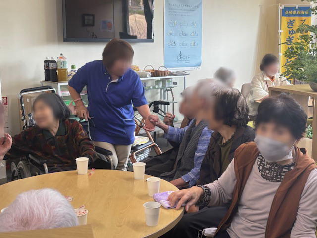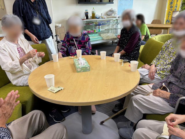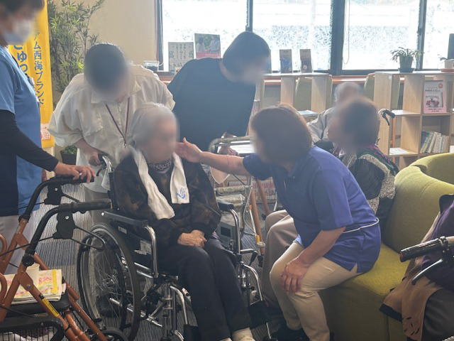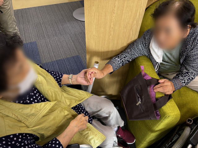 特養の職員とお知り合いの方がいらっしゃいましたが、マスクをしていて初めはわからなかったみたいですが、顔を見てあっと思い出したようで大変喜んでおりました。