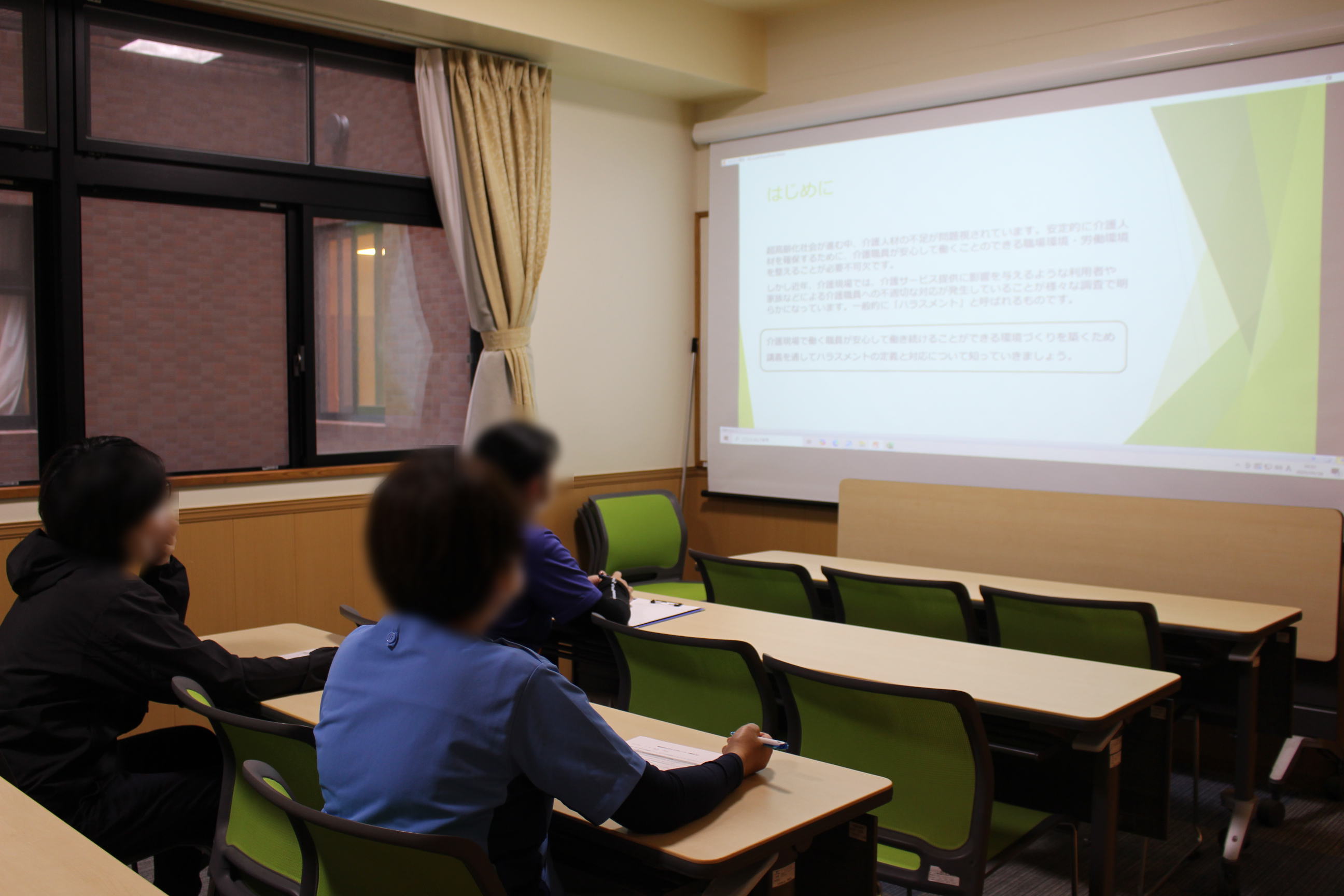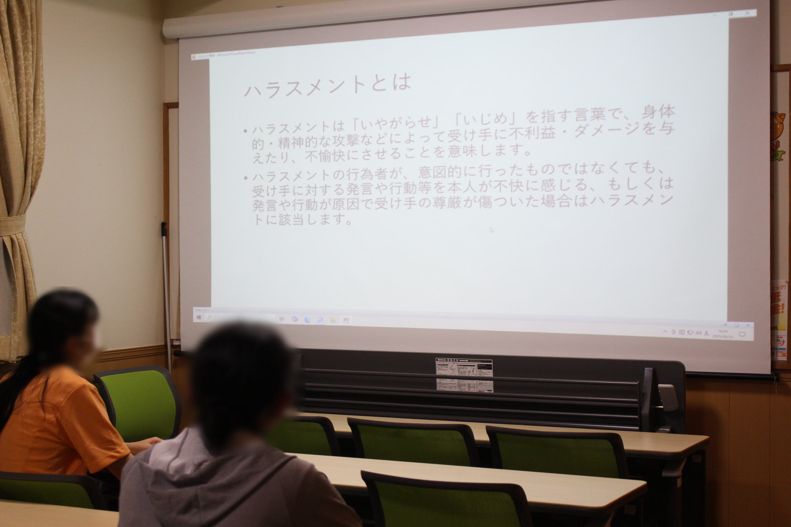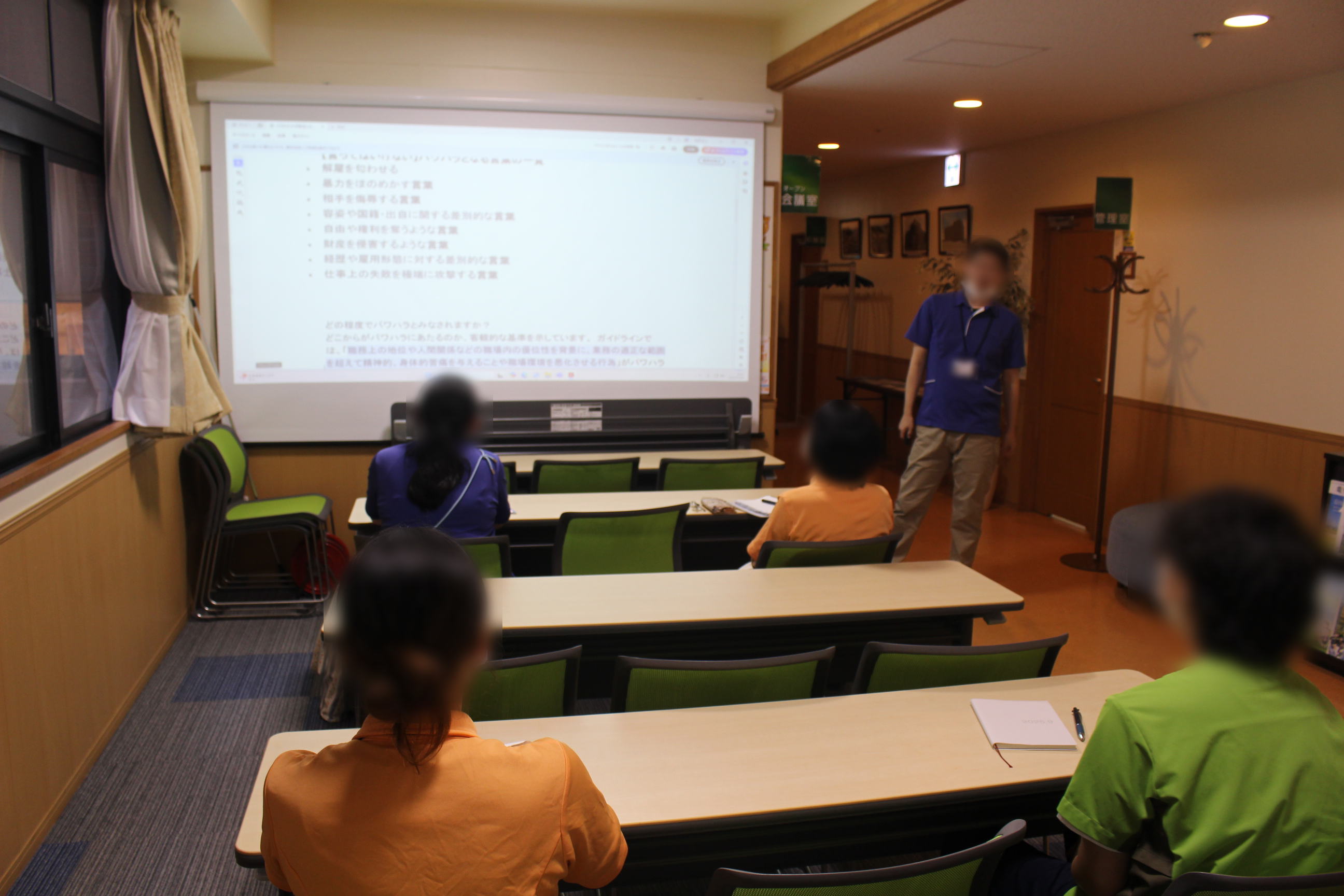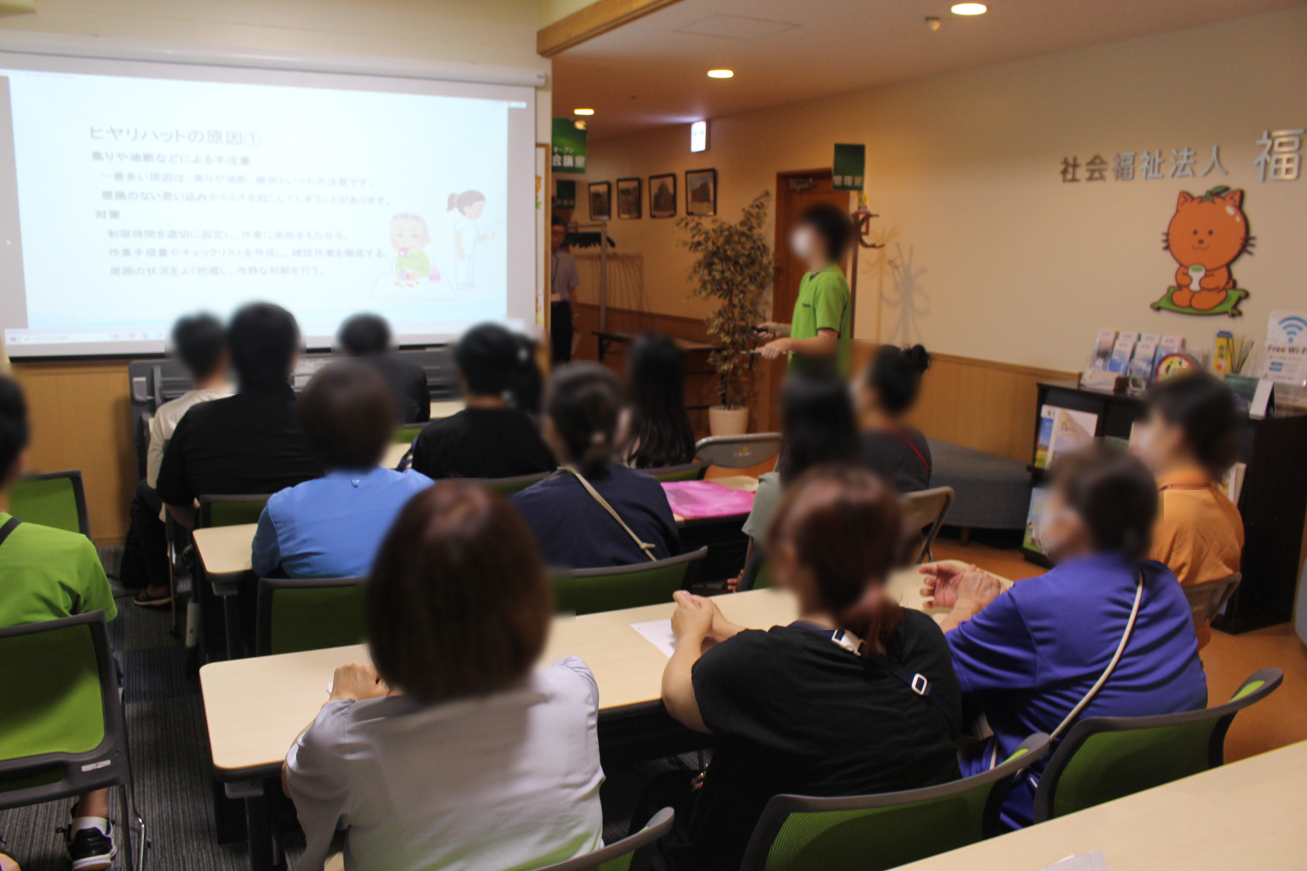 職員同士で確認し合い、和やかな雰囲気の中で学んでいます。