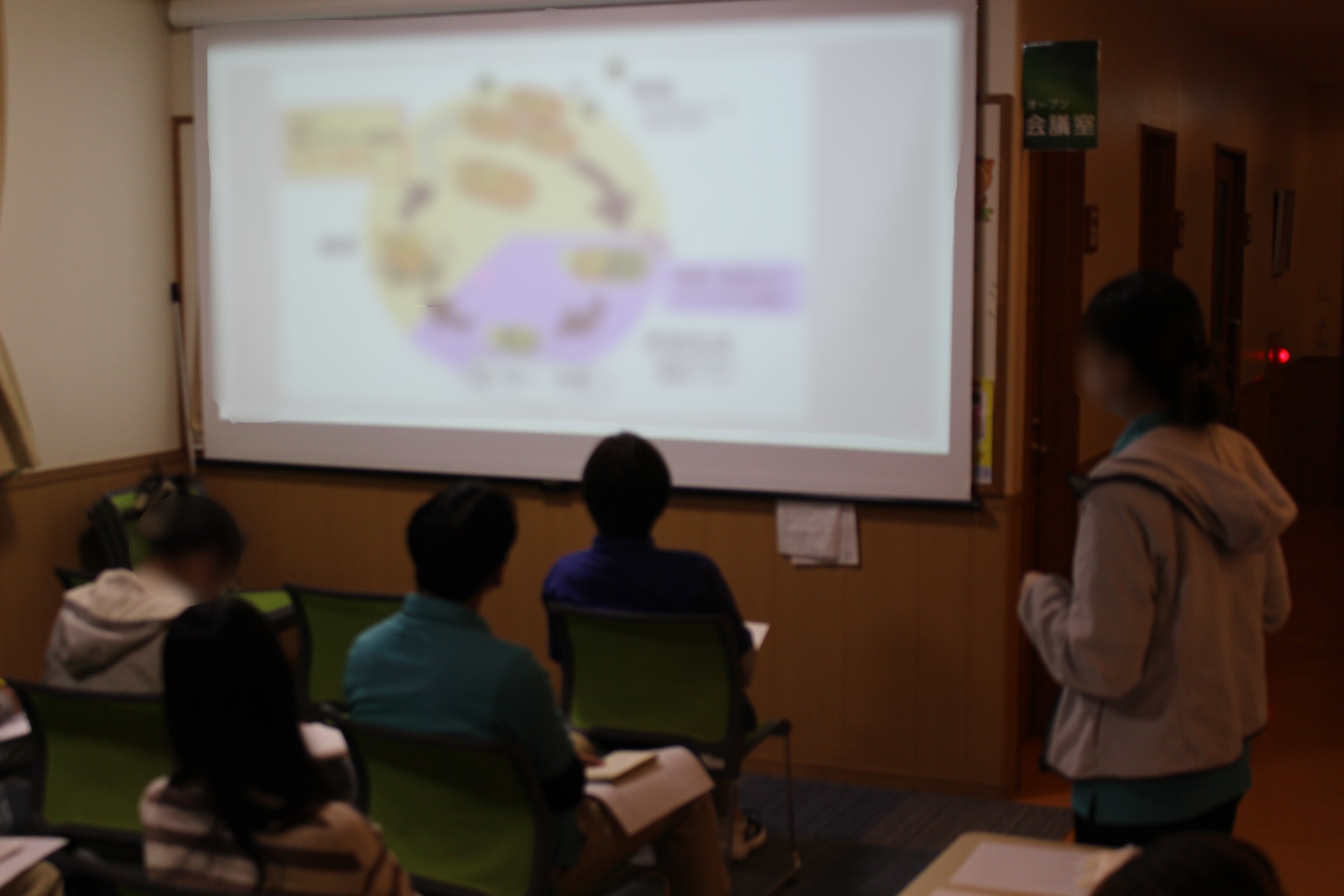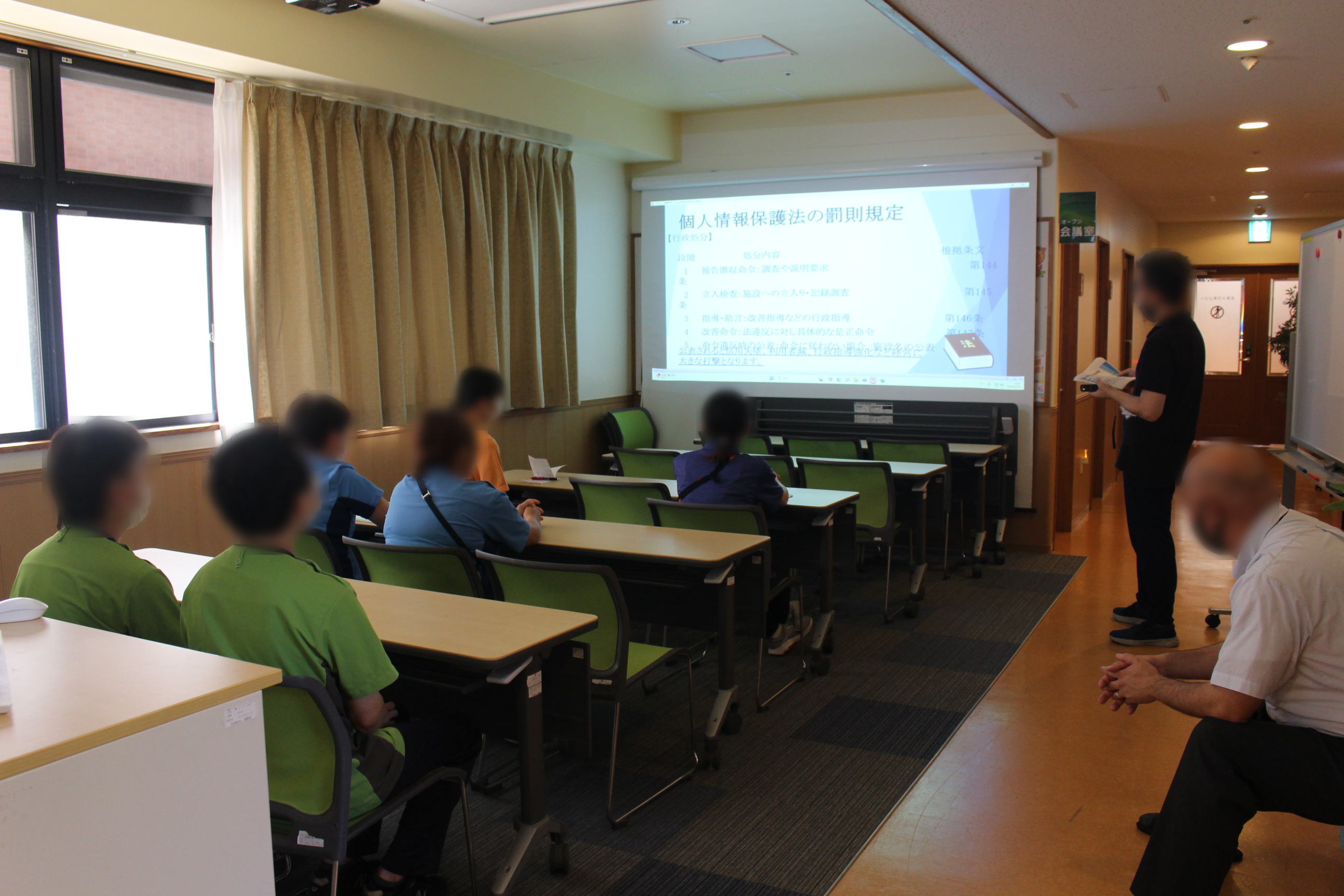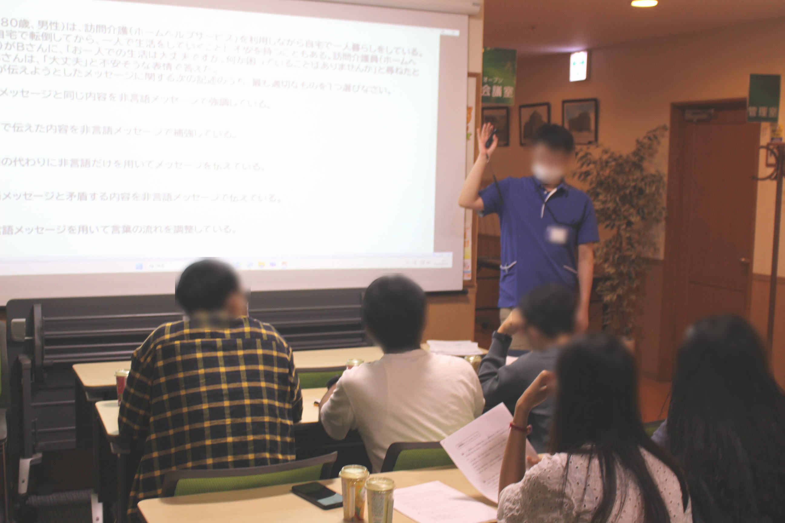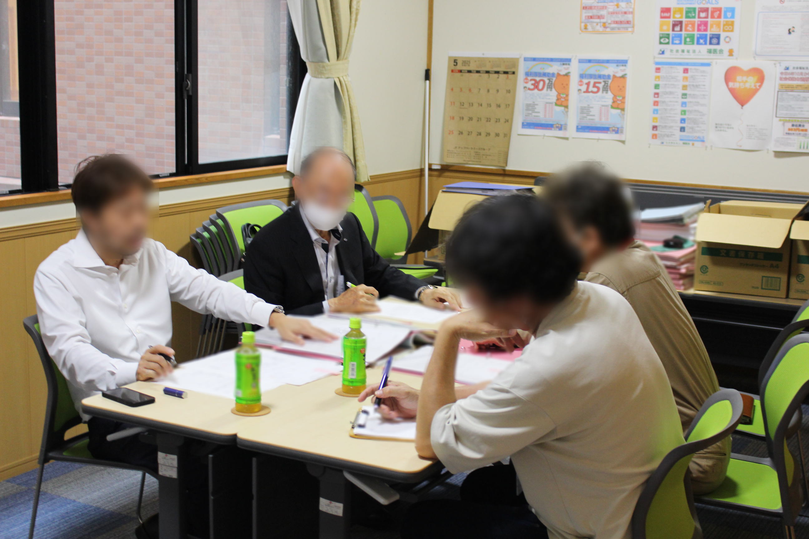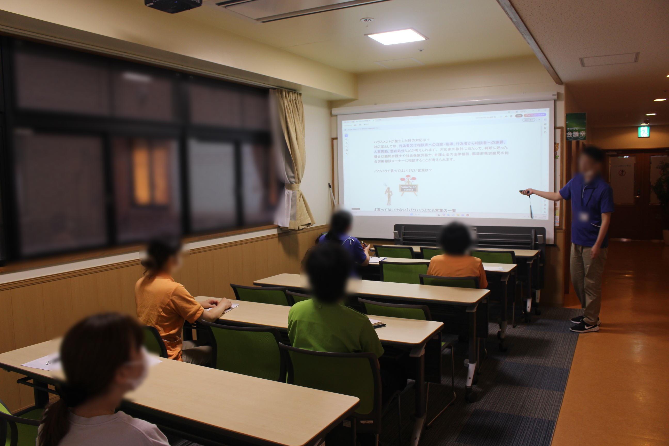 職員同士で確認し合い、和やかな雰囲気の中で学んでいます。