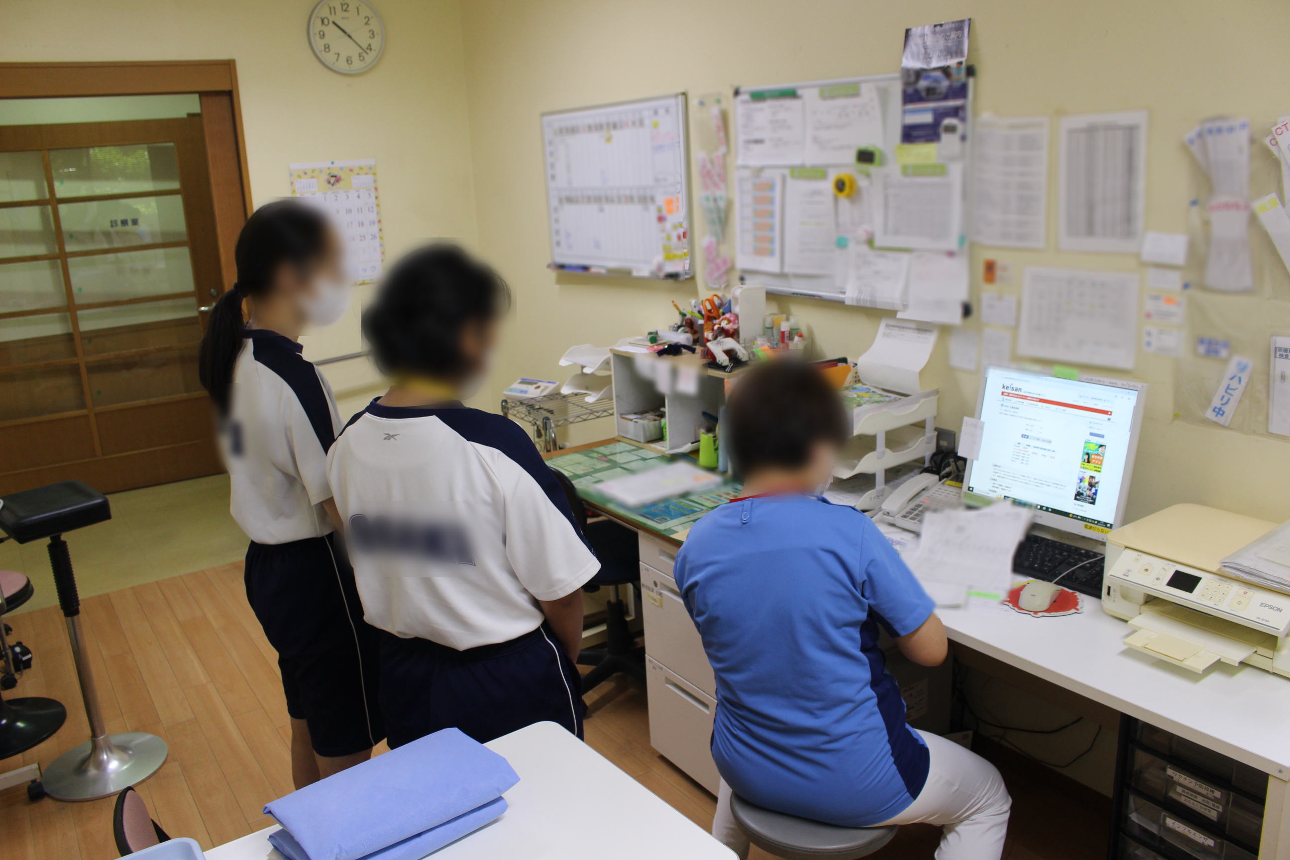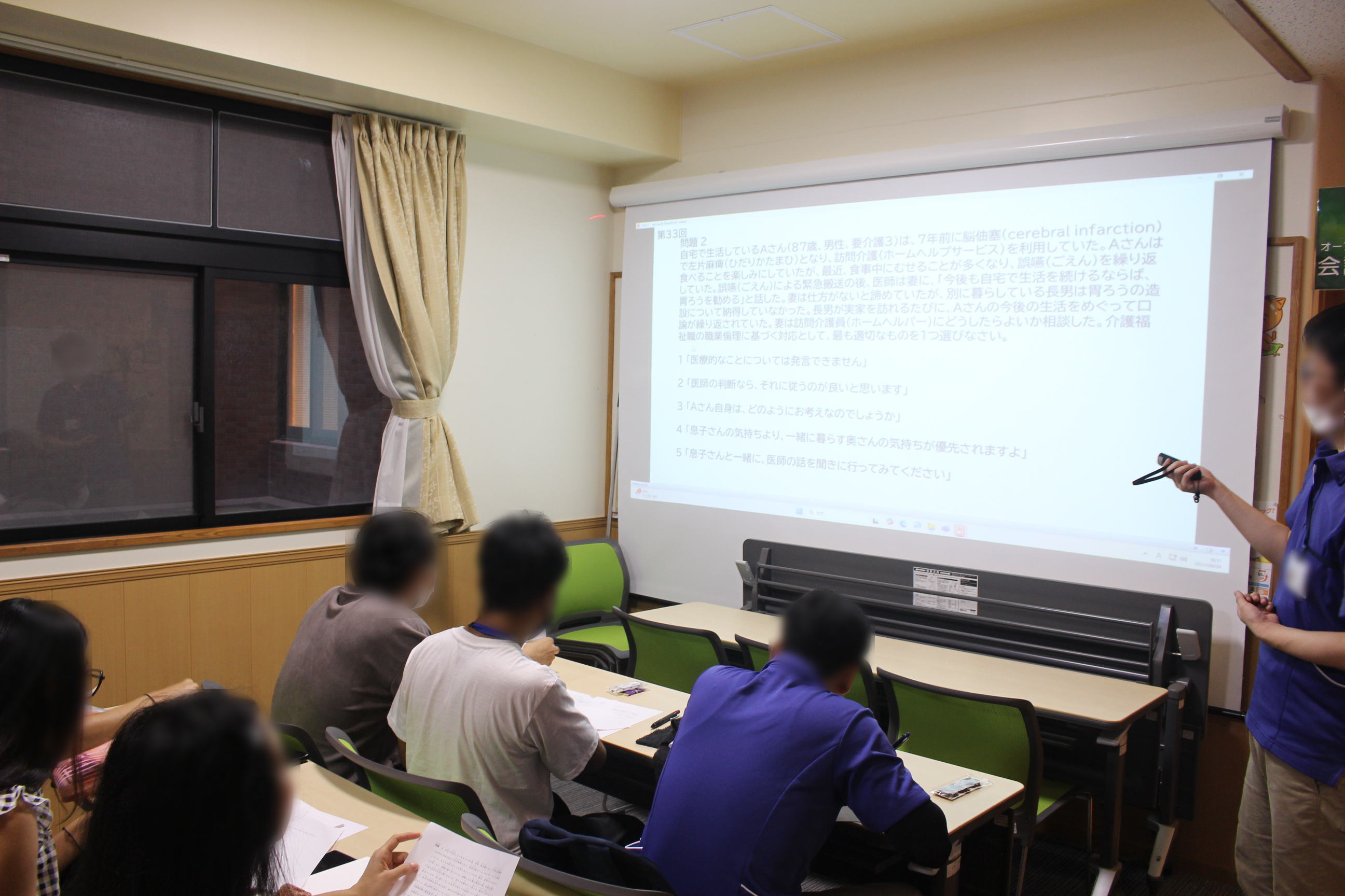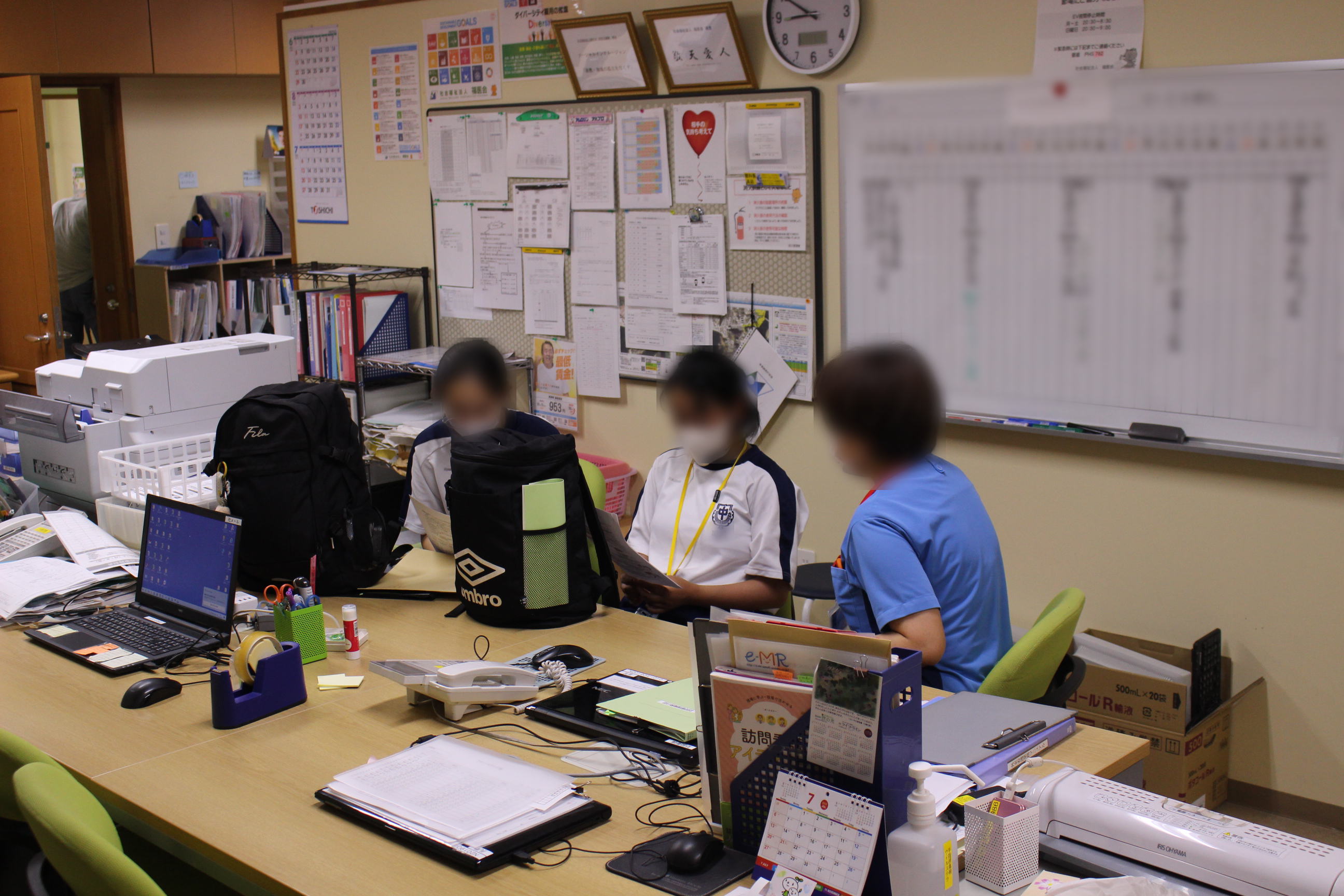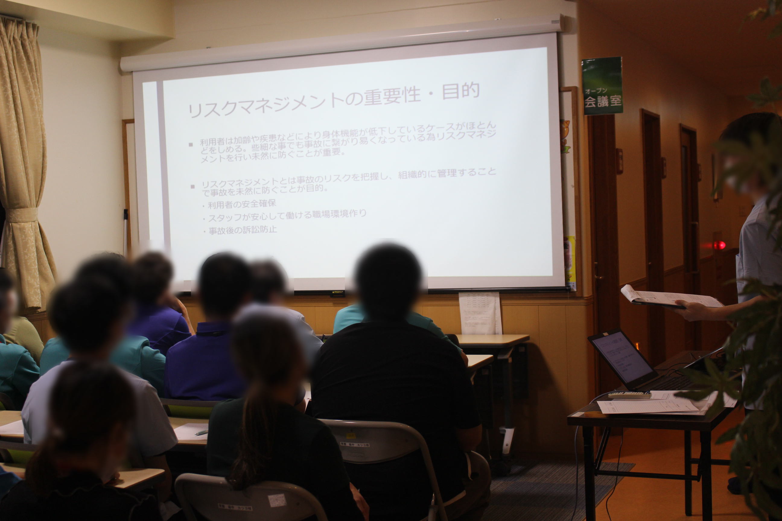 職員同士で確認し合い、和やかな雰囲気の中で学んでいます。
