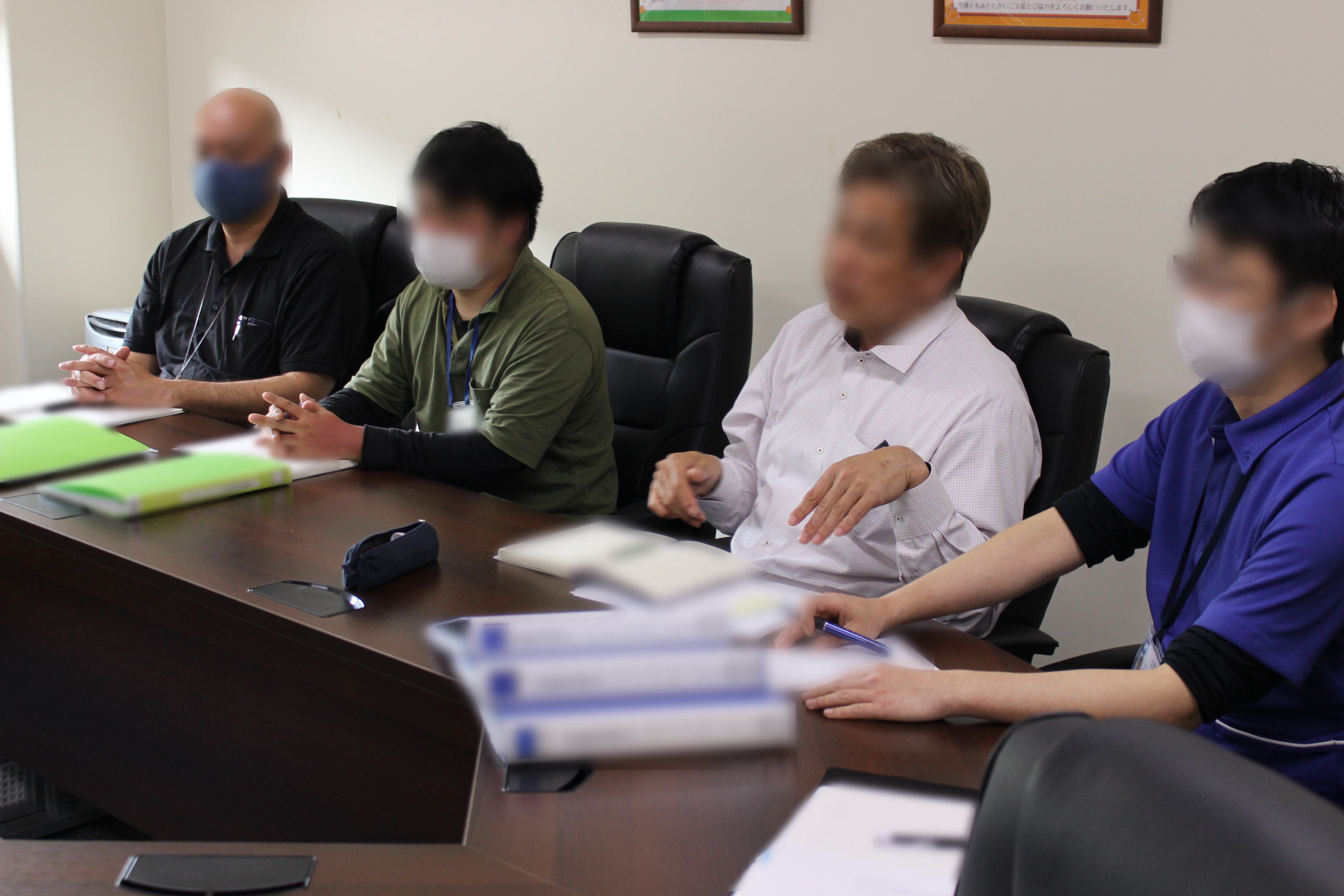 法人で就業している外国籍雇用の適正監査として、法人では毎月監理団体との監査会議を実施しています。雇用管理者、事業所責任者、事業所担当者、雇用担当者及び監理団体監査官の2者で情報共有をはじめ、