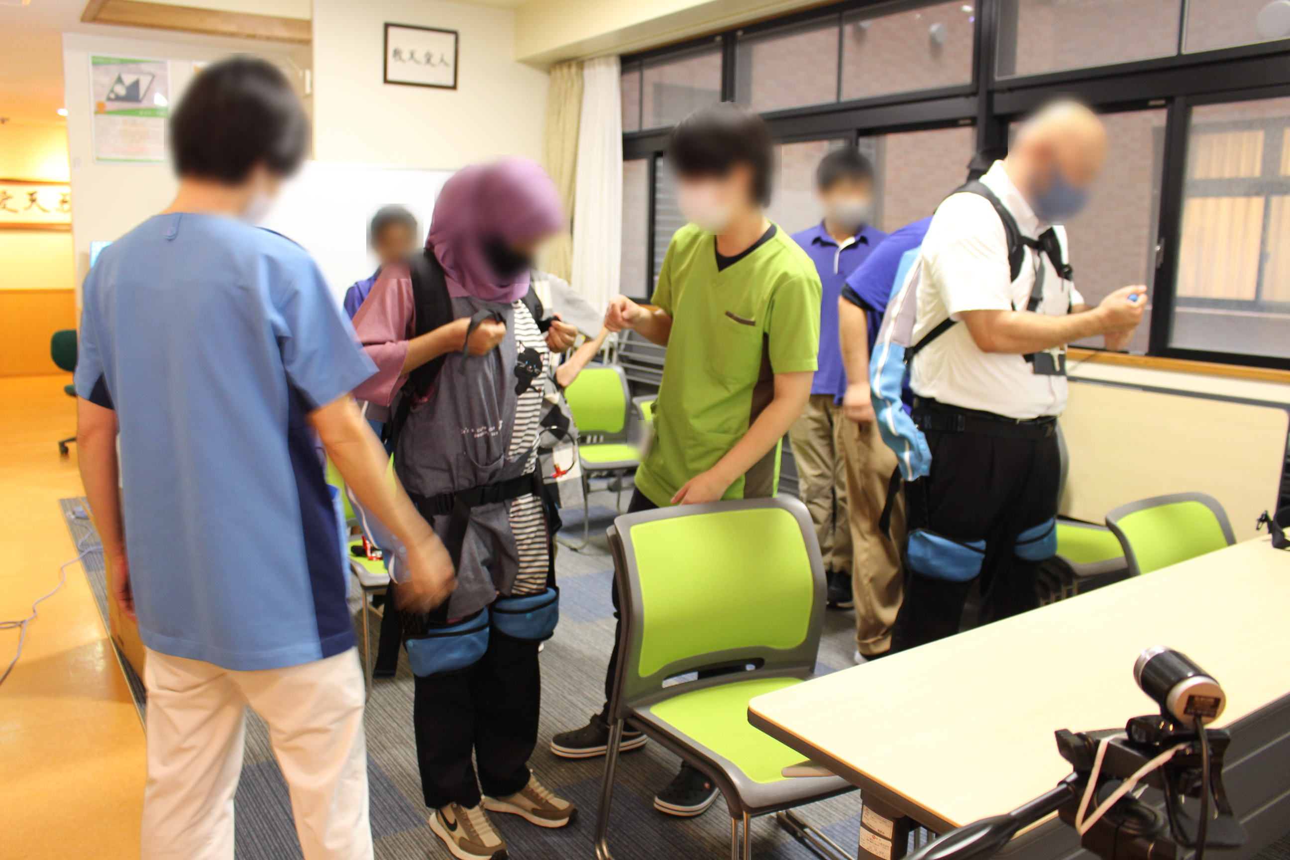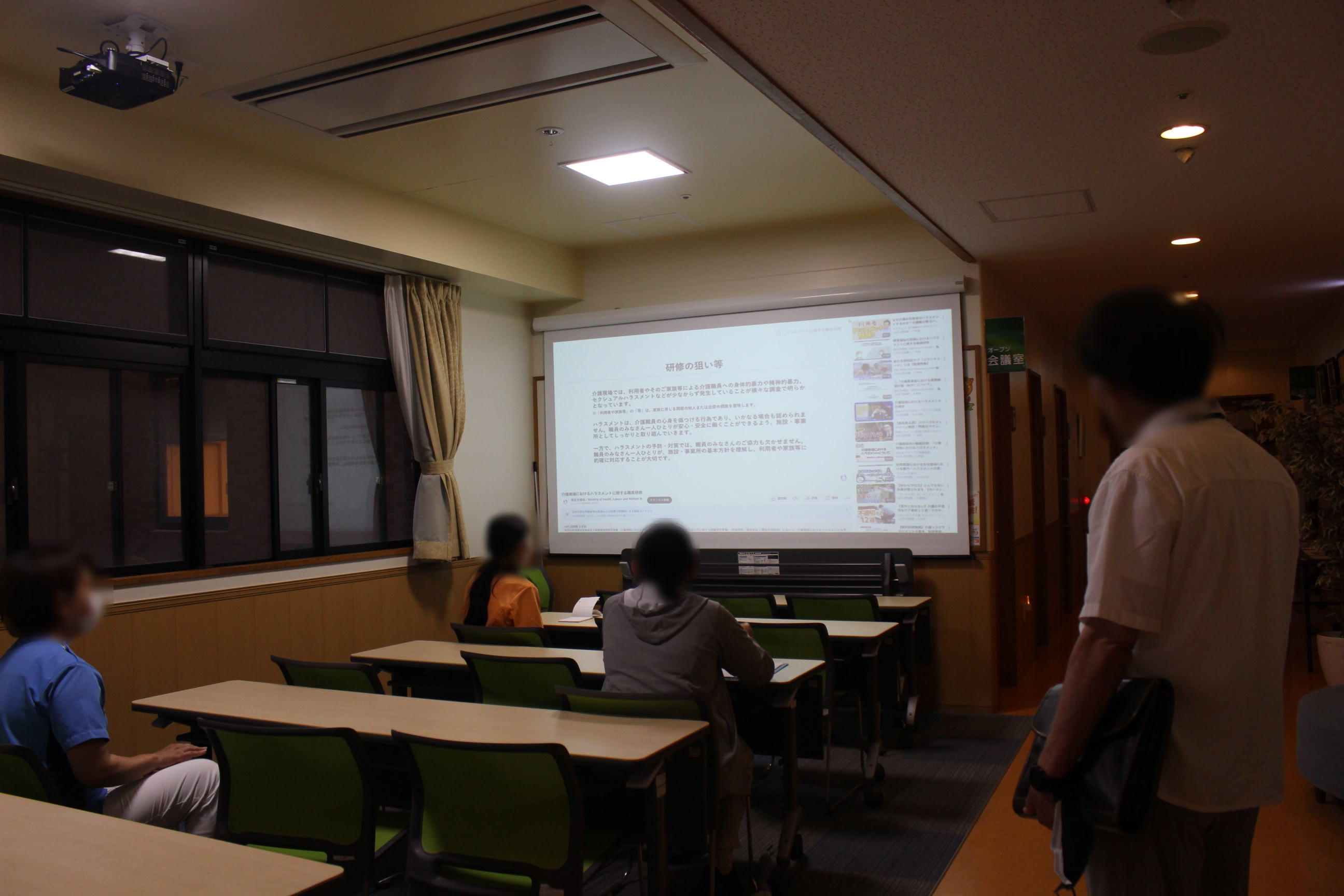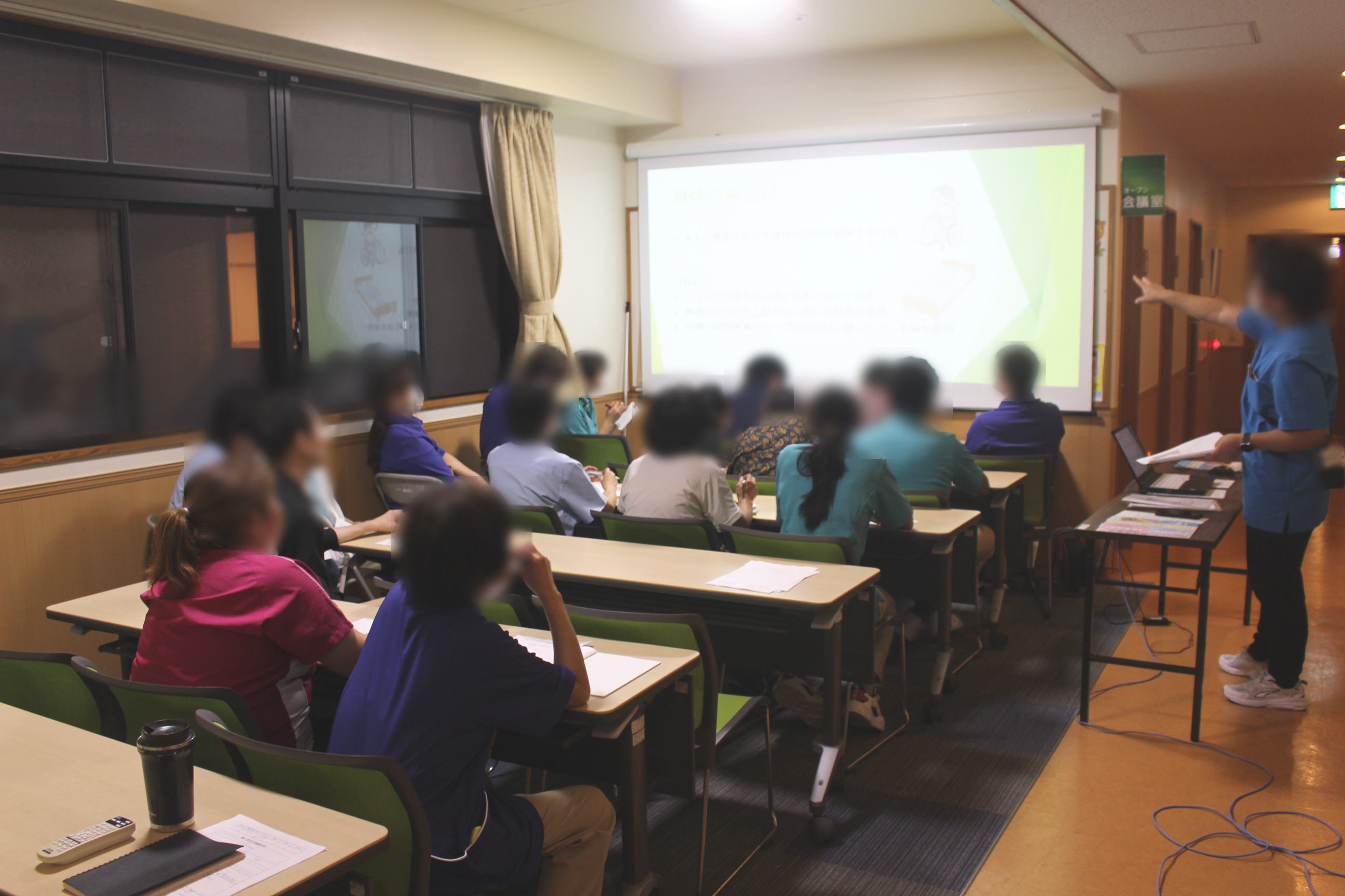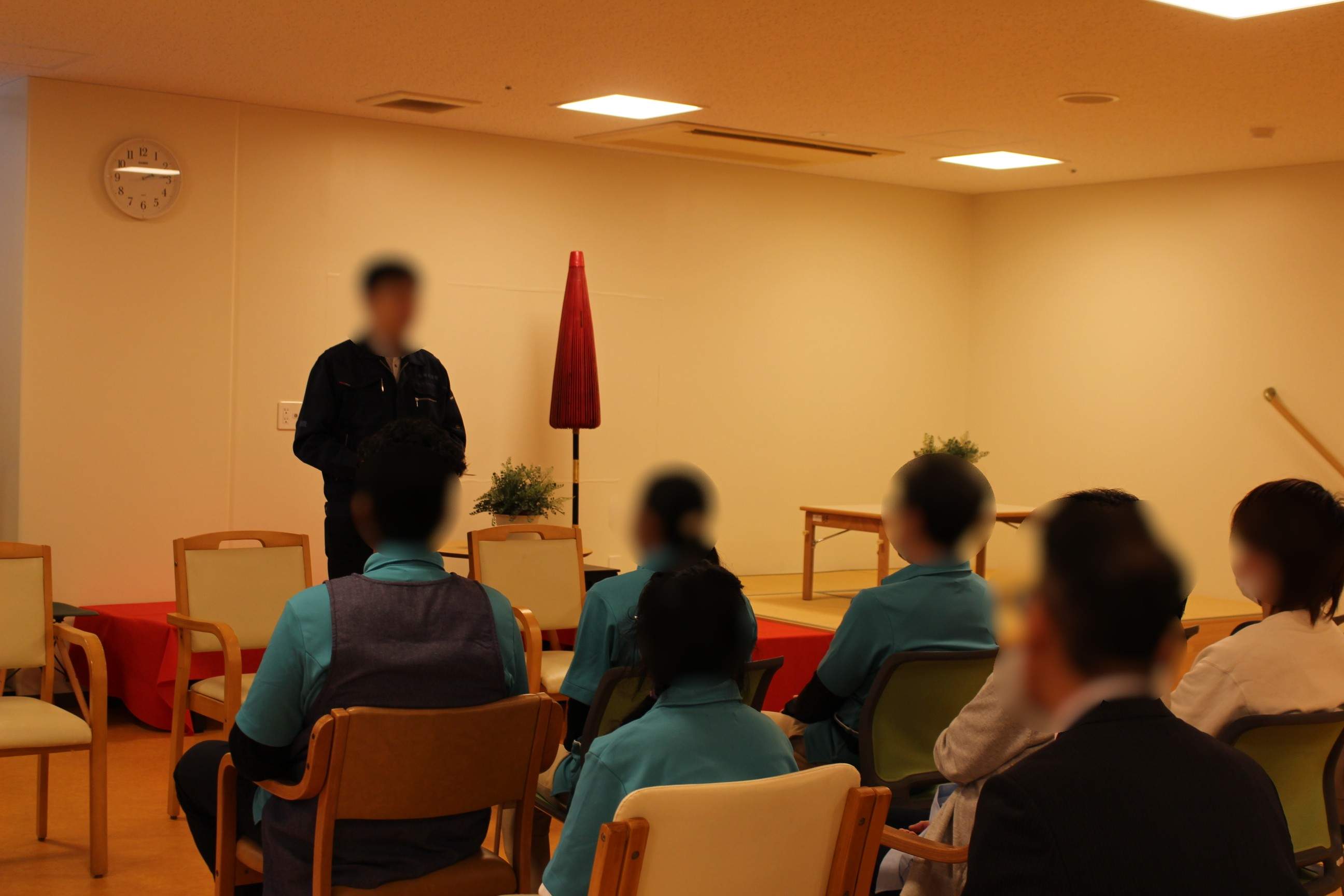 施設で働く介護従事者用のいくつかの福祉機器の導入に向けて、日々進化する機器の剪定に今回はアシストスーツのデモ機をお借りして、一定期間実際に現場で使用するため、研修会を実施しました。