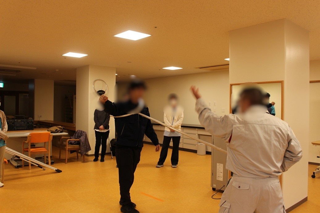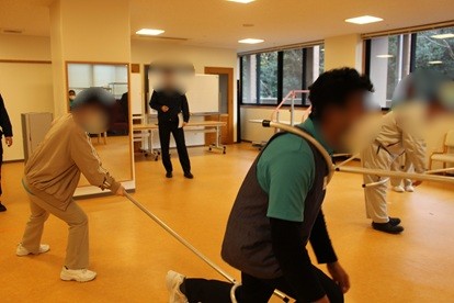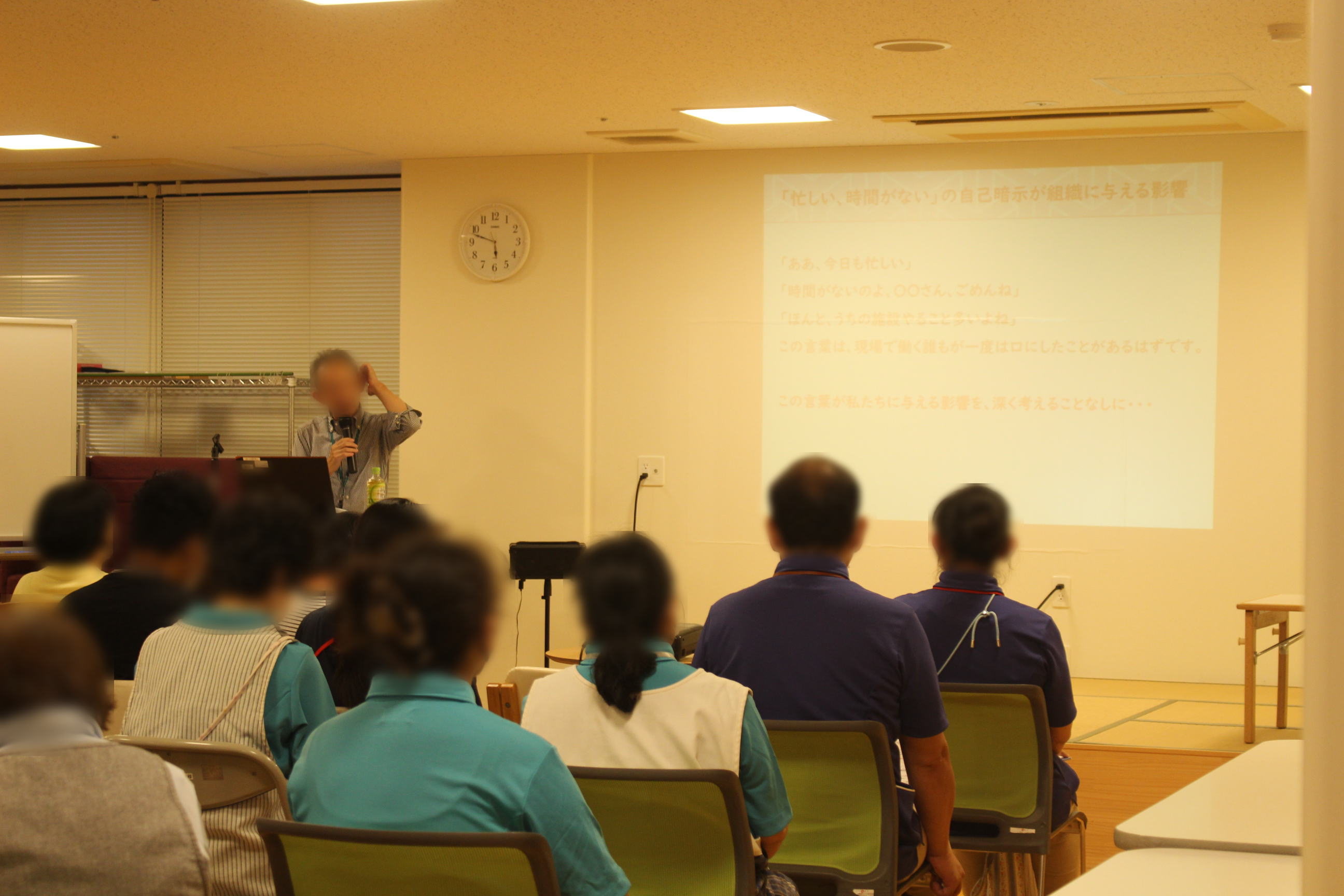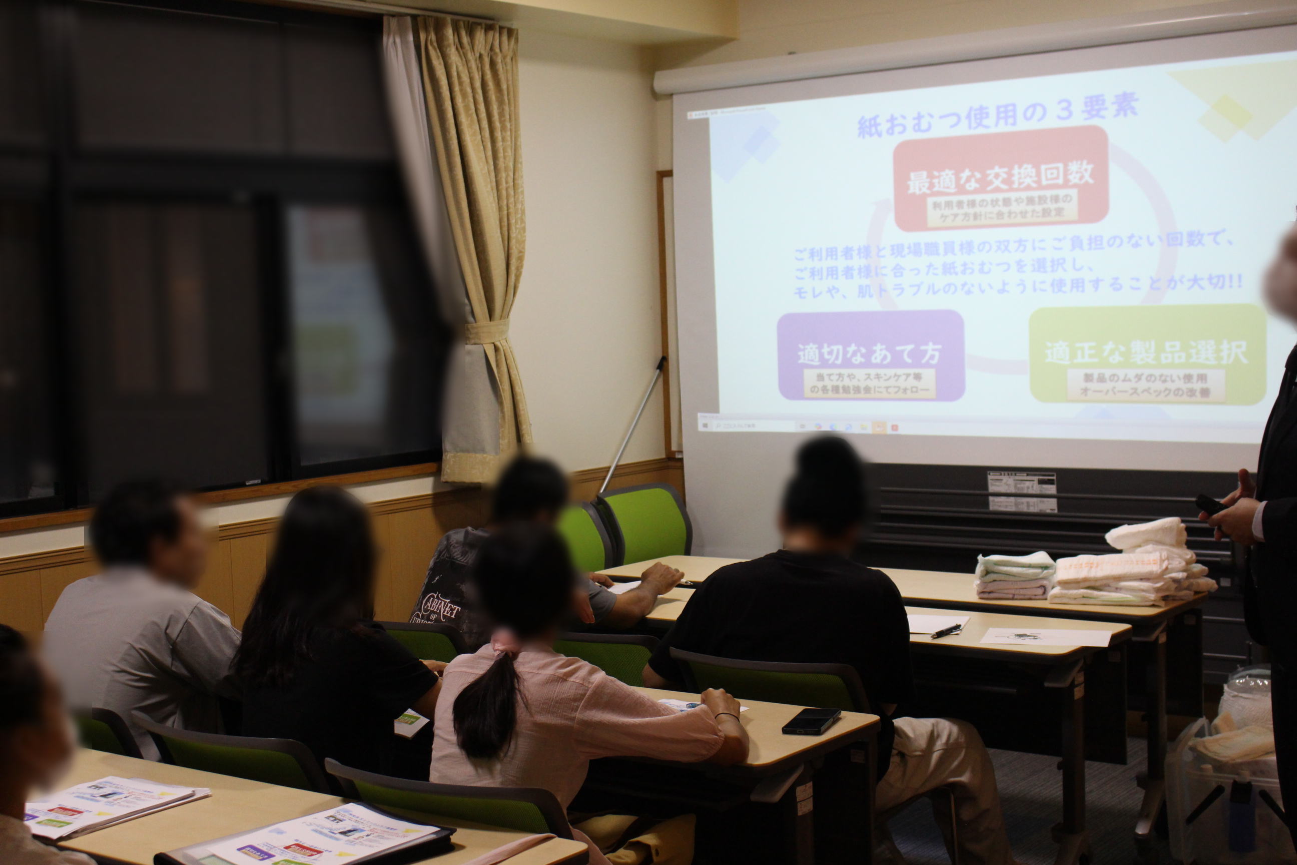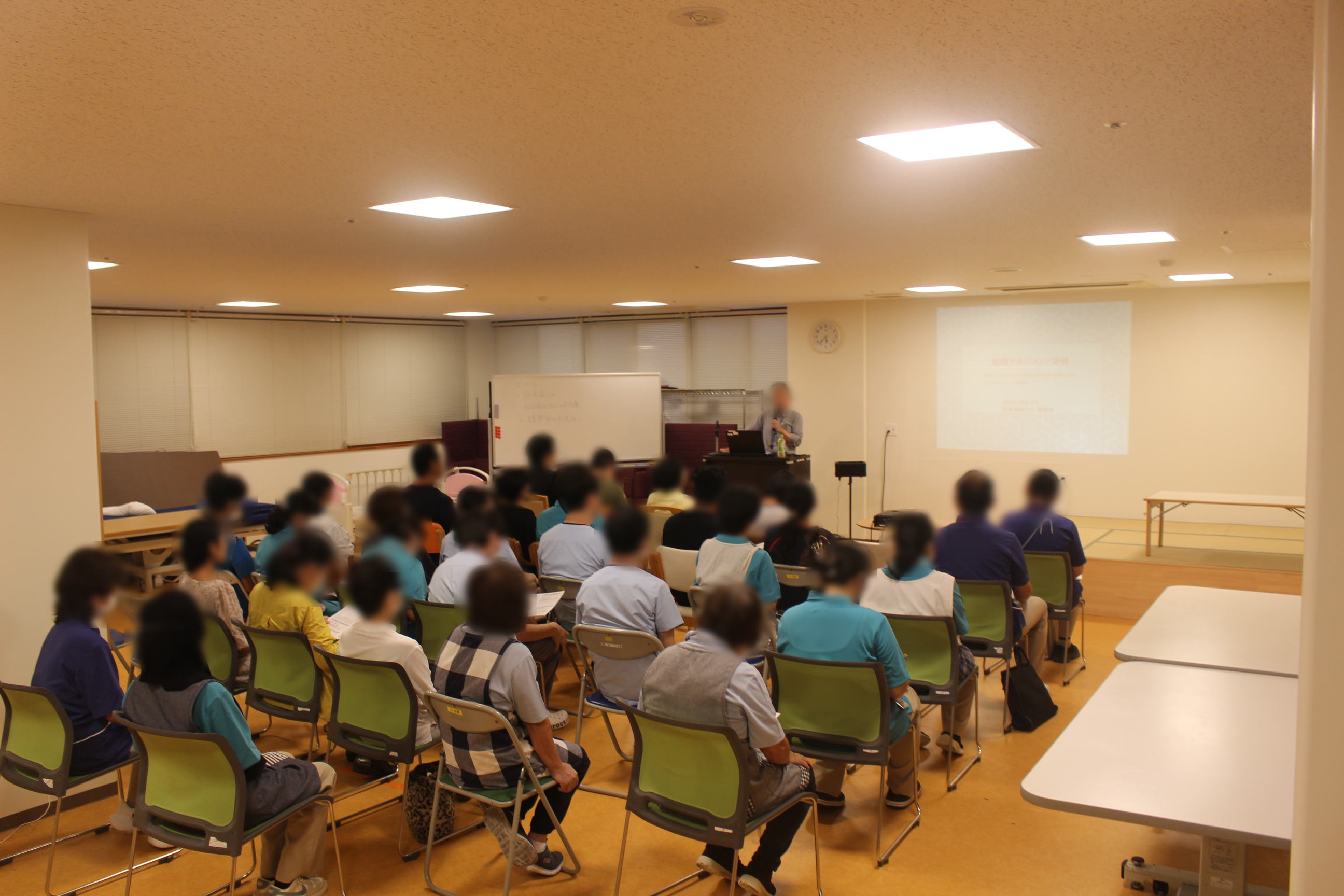 施設で働く介護従事者用のいくつかの福祉機器の導入に向けて、日々進化する機器の剪定に今回はアシストスーツのデモ機をお借りして、一定期間実際に現場で使用するため、研修会を実施しました。