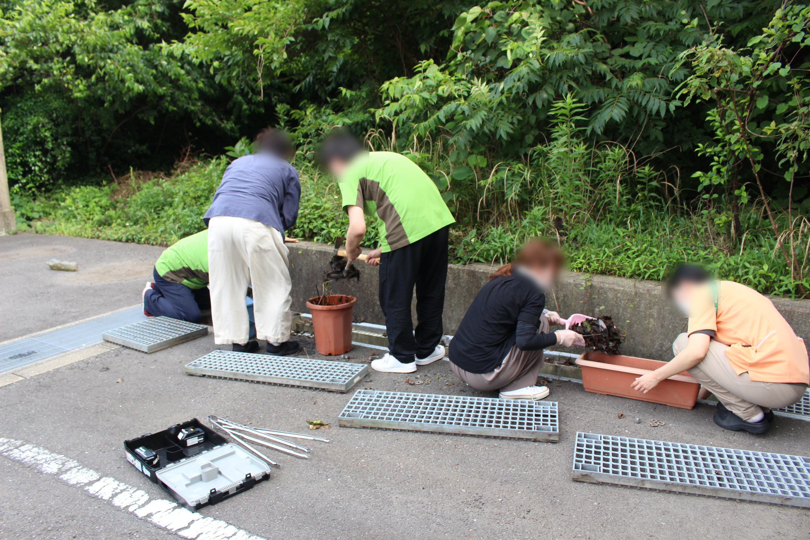 センターでは植栽の剪定や花壇の植え込み、屋上の花壇の整備など、環境整備を進められたらと