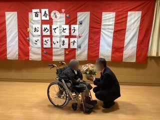 1月吉日100歳を迎えられた利用者様をお祝いするため🎉