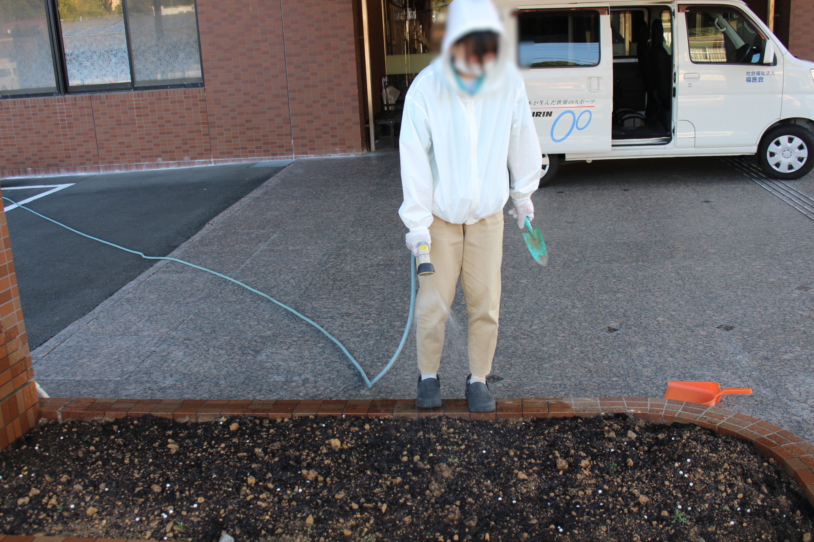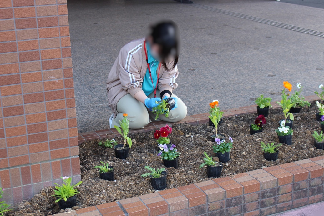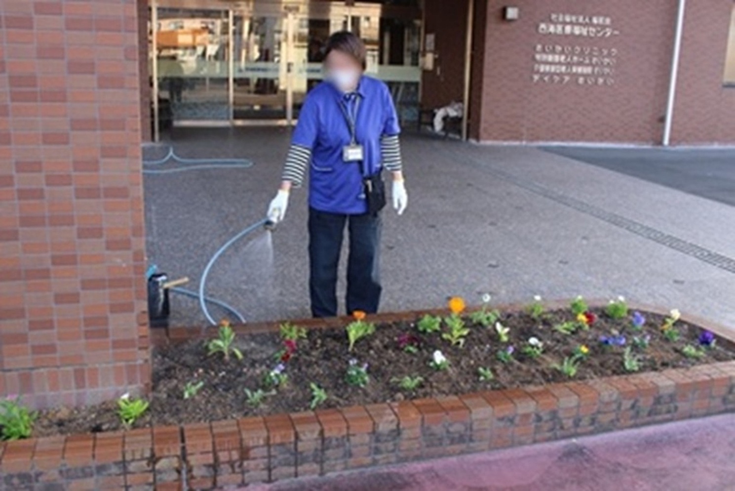 春を感じる季節にかわり、西海医療福祉センター玄関前の花壇に花を植えました。