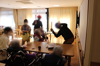 節分行事として3事業所合同にて豆まきを行い、利用者様・入居様にご参加いただきました。